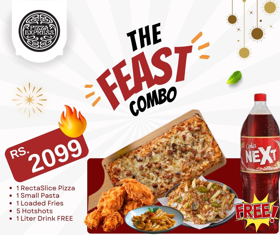 Get 1 Recta Slice Pizza, 1 Small Pasta, 1 Loaded Fries, 5 HotShots, 1 Littre Drink Free!!!