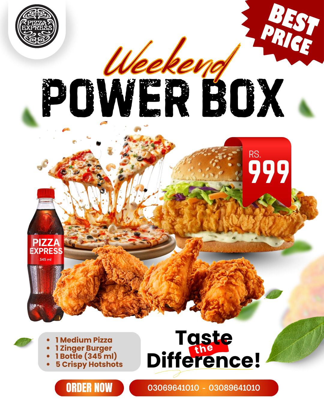 Get 1 Medium Pizza, 1 Zinger Burger, 1 Bottle (345ml), 5 Crispy HotShots!!!